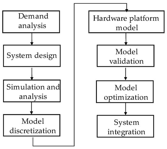 The traditional design is divided into four stages: requirement, design, implementation, and testing [,]. It has the disadvantages of low efficiency, high difficulty, and high requirements, which is not conducive to verifying new algorithms. Therefore, model-based design is introduced in this paper.