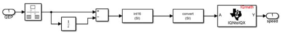 In order to increase the program processing speed, it is necessary to perform fixed-point processing on the core model, mainly processing the data collected by the ADC and eQEP modules and some mathematical calculation modules. In order to accelerate the processing speed of the program, fixed-point processing is needed for the core model, mainly for the data collected by ADC, eQEP module, and part of the mathematical calculation module.