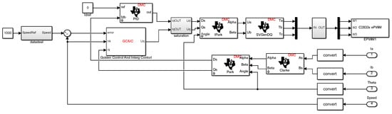 MATLAB provides many hardware support packages, including TI C2000 processor series, for the basic FOC system, which generally need ePWM module, ADC module, eQEP module and interrupt system [].