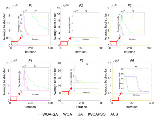 Table 6 reports the statistical results for the variable-dimension multimodal and fixed-dimension multimodal functions. WOA-GA can obtain the near-optimal solution for