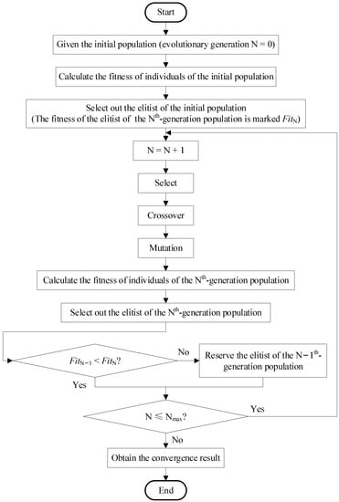 A genetic algorithm with an elitist preservation strategy (as shown in Figure 2) is employed to optimize the six design variables of the PQE. Real coding is adopted, and the values of the six design variables of the PQE are determined as the genes of the individual. Thus, every individual can represent a kind of PQE design. To make sure that the PQE obtained finally has satisfied dynamic characteristics, a constraint condition is given to the PQE. Namely, the static gain between the output of the PQE and the manipulated variable must be greater than a pre-set lower limit. If an individual represents a PQE that does not satisfy this constraint condition, it is illegal and should be abandoned during the optimization process. The reciprocal of the AAVM of the output of the PQE is selected as a fitness function to increase the estimation accuracy of the PQE to the greatest degree. In addition, the genetic algorithm employed here differs from the conventional genetic algorithm in that it involves only three steps of selection, crossover, and mutation. An additional elitist preservation strategy is used to improve global searching ability and efficiency. The elitist is defined as the individual that has the biggest fitness in the population, and the fitness of the elitist of the Nth-generation population can be marked FitN. After the Nth-evolution round, if the fitness of the elitist of the current generation population (FitN) is smaller than that of the last generation population (FitN−1), the bottom 10% of individuals according to the fitness of the current generation population should be replaced by the elitist of the last generation population.