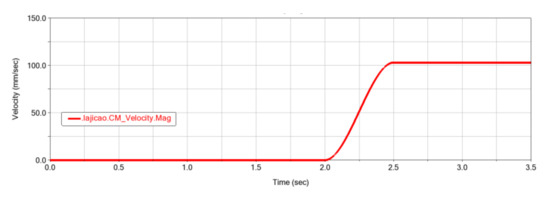 The angular velocity drive was used during simulation of the waste sorting mechanism [32], and the rotation speed was set to 50 °/s. The starting time of the steering gear was delayed by t = 2 s to simulate the waste movement in the identification platform and evaluate the feasibility of the structural design.