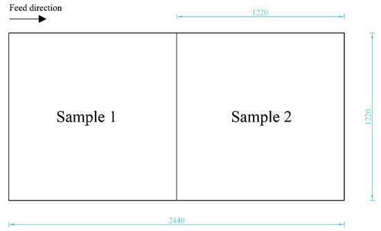 A total of 60 pieces of veneered particleboard were obtained from Oppein Home Group, Inc. The dimensions of the boards were 1220 mm × 2440 mm × 18 mm.