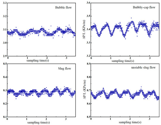 In this experiment, a capacitive differential pressure sensor (htj300) manufactured by the Institute of metrology, China Aerospace Science and Technology Group is used, and the range is 2 kPa. The margin of error is 0.5%. The pressure information measured by the differential pressure sensor is output as a current signal (4–20 mA), converted into a voltage signal (1–5 V) by 250 Ω resistance, and then converted into a digital signal through an A/D data acquisition card, and stored on the computer. The automatic and real-time acquisition of electrical output signal is realized. Before each experimental measurement, the two ends of the differential pressure sensor should be filled with complete experimental fluid, and the sampling frequency should be set at 1000 Hz. The ERT system is mainly composed of four parts: the sensor array (ERT Sensor), the data acquisition and processing unit (Data Acquisition System), the image reconstruction unit (Image Reconstruction System) and the computer. The system (09-P2000-04) conducted an online real-time analysis of the flow in the microchannel. The gas-liquid two-phase flow state in the microchannel was observed and recorded in real-time by a high-speed camera (2F04C) manufactured by Hefei Fuhuang Junda Hi-Tech Information Technology Company. The maximum pixel resolution of the high-speed camera is 2320 × 1720, the exposure time range is 1/1,000,000–1/50 s, and the acquisition frequency is up to 32,400 fps.