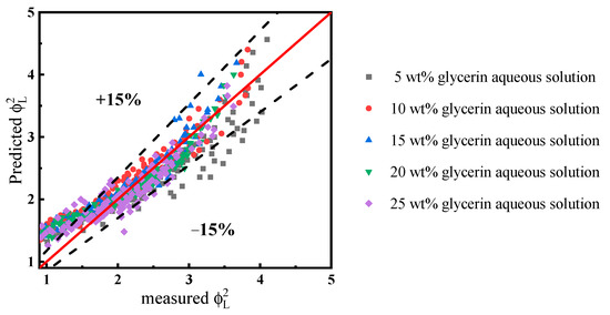 The comparison results between the experimental value of the two-phase friction coefficient and the predicted value of the modified correlation are shown in Figure 10. The calculation results of the modified correlation are highly consistent with the experimental values. It verifies that the modified formula can accurately predict the two-phase friction coefficient in the microchannel within the experimental range.