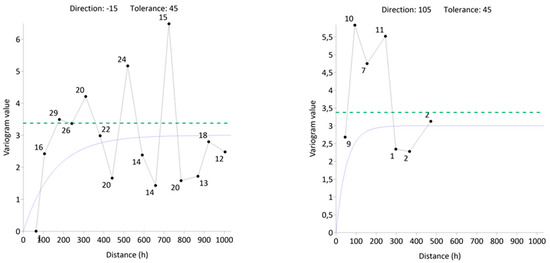 The experimental variogram is most often approximated with spherical, exponential, Gaussian, or linear theoretical models. The variogram models are also distinguished regarding the existence of the nugget effect or not [33].