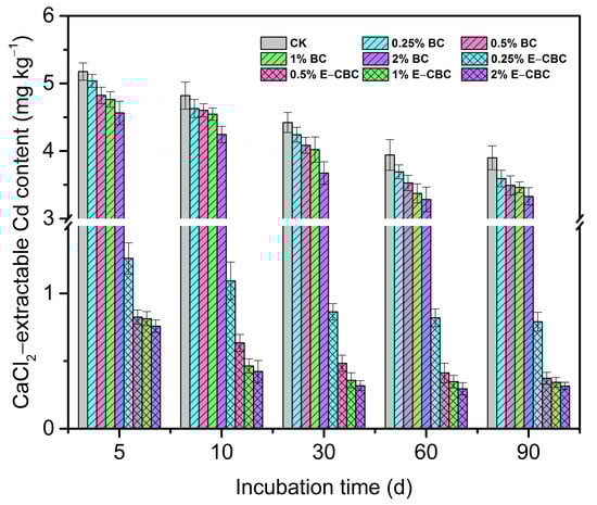 3.3. Effects of Modified Biochar on the Bioavailability of Cd