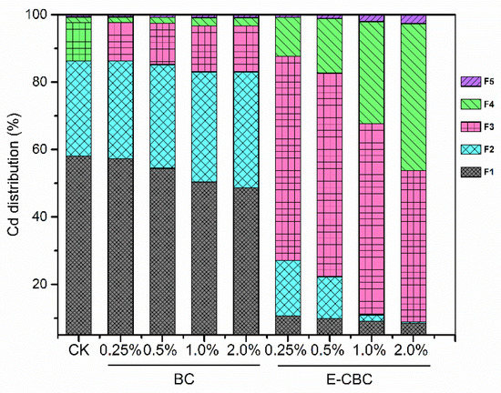 3.5. Effects of Modified Biochar on Speciation of Cd