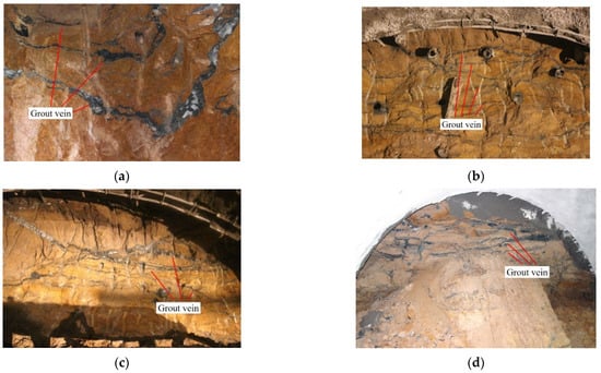 As shown in Figure 21, grout veins are approximately parallel with each other, consistent with the basic assumption of calculation model for fracture–compaction grouting.