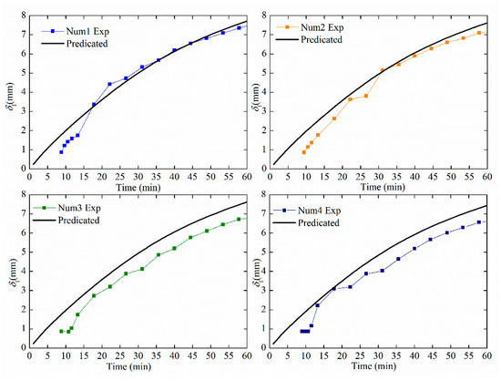 As Figure 3 illustrates, along the flowing direction of deep cryogenic fluid in the finned tube, a measuring point is arranged at the position of the finned tube per 300 mm, with a total of four measuring points. The thickness of frost layer increased with time, but the growth rate decreased with time. It can be ascertained that the predicted results agreed well with the observational data in which the root–mean–square error was 0.749 mm, where the experimental results are presented in ref. [38].