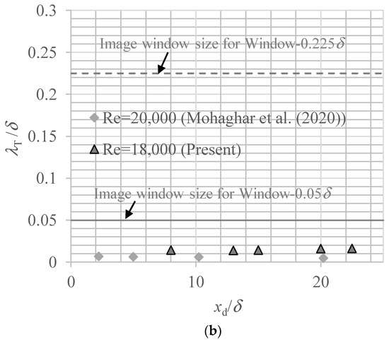 According to DNS database [30], ub/v’ = 15–20 for Reτ = 180–640. Then, xh at Reb = 18,000 was estimated as follows: