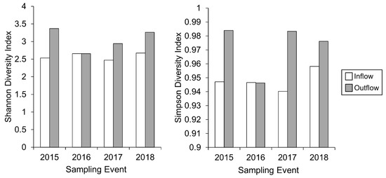 - Niyogi, D.K.; Lewis, W.M., Jr.; McKnight, D.M. Effects of stress from mine drainage on diversity, biomass, and function of primary producers in mountain streams. Ecosystems 2002, 5, 554–567. [Google Scholar]