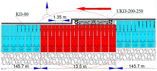 Geomechanical displacement processes of the above-coal thickness are controlled as follows. It is required to determine the coordinates according to the length of the extraction pillar of the main roof caving within the already mined-out sites and not to allow any coincidences in the forecasted places of the main roof caving in the longwall, which has experienced caving before. To do this, it is necessary to reduce the stope advance rate down to 3.0–4.0 m/day, during and not less than 2 working days, which will be about 6.0–8.0 m to the previously determined places of the main roof caving in a longwall [32,35].