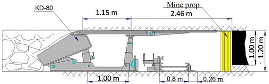 Subsequently, the following measures to control powered support of the 1KD-80 type are to be considered. One should ensure the constant monitoring of pressure in the hydraulic props with an insufficient setting load by regular readings of the pressure indices in the piston cavities. When a unit displaces, it is required to apply an additional setting load to both the front and rare rows of hydraulic props. In the case of the formation of inrushes or false roofs, one should put chocks on the unit canopies or move lower from the roof, leaving a coal bench of 0.1–0.15 m thickness along the roof. In the case of a long-term shutdown of stoping (more than 6 h), the powered support units are to be displaced immediately adjacent to a face. Additional load-bearing supports under the cantilevered part are to be installed in the units with the increased load on the canopy cantilevers (face of the front rows of hydraulic props with the height of 0.01–0.03 m) [32,33,35].