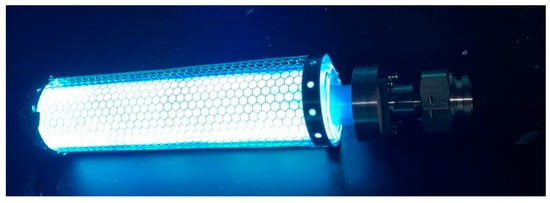 Sterilization is an essential procedure in medical treatment, environmental protection, food safety, and reuse of water. At present, ultraviolet lamps are widely used in various industries as a general sterilization method, but the UV lamp has the disadvantages of insufficient power and incomplete sterilization []. The microwave-driven electrodeless ultraviolet lamp provides a new solution for sterilization. In 2016, Zhang et al. proposed a microwave-induced electrodeless ultraviolet (MW-EUV) lamp and demonstrated that MW-EUV irradiation was a rapid and efficient method without photoreactivation. The treated water met the hygiene standards for the reuse of recycled water []. Furthermore, electrodeless UV lamps can be utilized in air disinfection as purifiers []. Subsequently, UV lamps have a wide range of uses in chemical fields [,,,,,].
