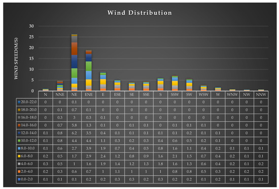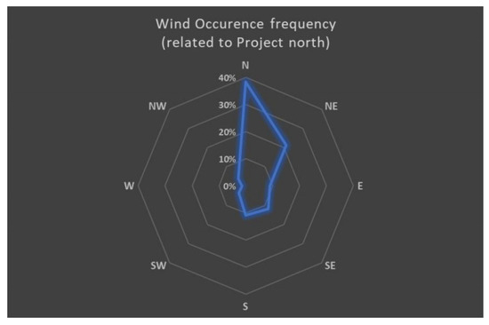Summarized wind occurrence frequency according to Project North.