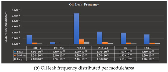 Leak frequency summarized per area. (a) represents the gas leak frequency distributed per module/area; (b) represents the oil leak frequency distributed per module/area.