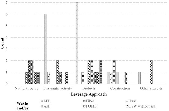 Note. a AM = America; EU = Europe; AS = Asia; AF = Africa; DL = Different places. b NS = Source of nutrients; EA = Enzyme activity; BF = Biofuel; CS = Construction; OI = Other interests. c PQ = Chemical process; PF = Physical processes; PB = Biological process. d EFB = Empty Fruit Bunches; FI = Fiber; CA = Husk; CE = Ash; POME = Residual effluent from ground plant (includes sludge).