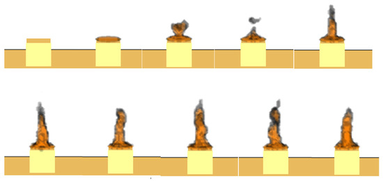 - Lenz, S.; Geier, M.; Krafczyk, M. Simulation of Fire with a Gas Kinetic Scheme on Distributed GPGPU Architectures. Computation 2020, 8, 50. [Google Scholar] [CrossRef]