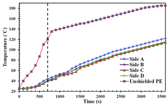 - The predicted solid-body temperatures from FDS were used as input boundary conditions for FEM simulations which were then used for carrying out detailed three-dimensional heat transfer simulations to investigate the thermal conduction within the solid (mild steel and polyethylene shields).