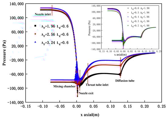 | Scheme | Nozzle Diameter Dz/mm | Throat Tube Diameter Dh/mm | Throat-Nozzle Distance Le/mm | Position of Suction Tube Inlet |