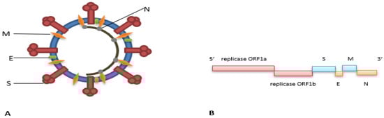 Coronaviruses or CoVs are enveloped, positive-sensed, single-stranded RNA viruses belonging to the order Nidovirales, family Coronaviridae, and subfamily Coronavirinae. Coronaviruses were originally grouped based on serology but are now classified based on phylogenetic relationships. This system of classification divided Coronavirinae into four genera, namely, alpha-, beta-, gamma-, and deltacoronavirus []. Generally, alpha- and betacoronaviruses are associated with humans and other mammals, while gamma- and deltacoronaviruses are linked to avians and, to some extent, marine mammals []. Their mode of transmission is usually through respiratory droplets, which are particles less than 5–10 μm in size, or alternatively, through fecal–oral routes. However, emerging evidence shows that airborne transmission or inhalation of droplet nuclei (aerosols) that may remain suspended in the air for some time, especially in occluded spaces, is possible []. Coronaviruses may not cause apparent infection in their original vertebrate hosts, but once they jump to livestock and humans from wildlife, they may cause mild to severe infection, even reaching epidemic and pandemic proportions if unabated [,]. Usually, coronaviruses cause mild to severe respiratory infection, kidney failure, enteric, including hepatic disease, and to some extent, neurological involvement depending on the type of coronavirus and animal host.