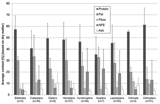 - Rumpold, B.A.; Schlüter, O.K. Nutritional Composition and Safety Aspects of Edible Insects. Mol. Nutr. Food Res. 2013, 57, 802–823. [Google Scholar] [CrossRef]