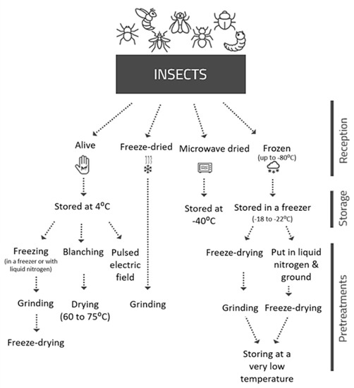 El Hajj, R.; Mhemdi, H.; Besombes, C.; Allaf, K.; Lefrançois, V.; Vorobiev, E. Edible Insects’ Transformation for Feed and Food Uses: An Overview of Current Insights and Future Developments in the Field. Processes 2022, 10, 970. https://doi.org/10.3390/pr10050970