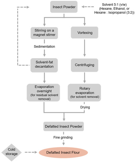 - Laroche, M.; Perreault, V.; Marciniak, A.; Gravel, A.; Chamberland, J.; Doyen, A. Comparison of Conventional and Sustainable Lipid Extraction Methods for the Production of Oil and Protein Isolate from Edible Insect Meal. Foods 2019, 8, 572. [Google Scholar] [CrossRef] [Green Version]
