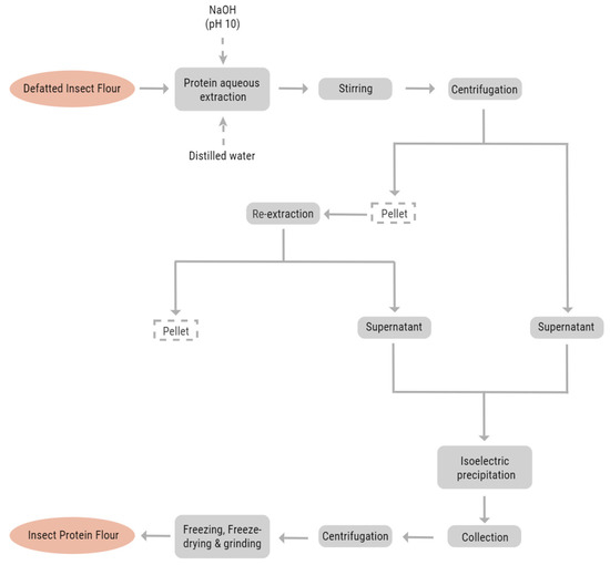 - Azagoh, C.; Ducept, F.; Garcia, R.; Rakotozafy, L.; Cuvelier, M.E.; Keller, S.; Lewandowski, R.; Mezdour, S. Extraction and Physicochemical Characterization of Tenebrio molitor Proteins. Food Res. Int. 2016, 88, 24–31. [Google Scholar] [CrossRef] [PubMed]