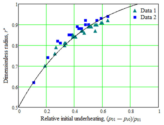 - the regression dependence interpolating dataset from Figure 6 has been obtained based on the experimental dependence of the dimensionless radius on the modified Euler number.