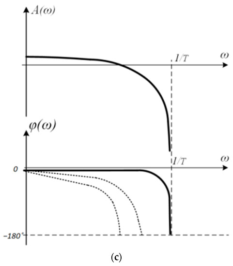 A technique [6,7] for constructing the frequency response of impulse links as suppression links is proposed (Figure 3c). However, the variable frequencies and duty cycles of the pulses make these links “even more” nonlinear, since it is the “suppression frequency” that changes.