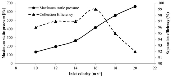 Maximum static pressure and separation efficiency in various inlet velocities.