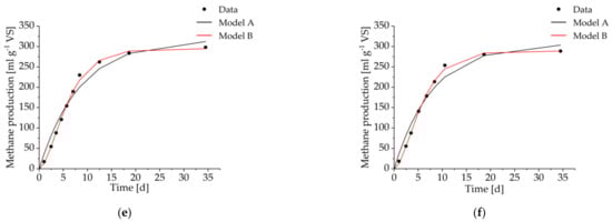 Figure 2 shows the progression of individual measurements and both model results of cumulative methane production in individual BMP tests.