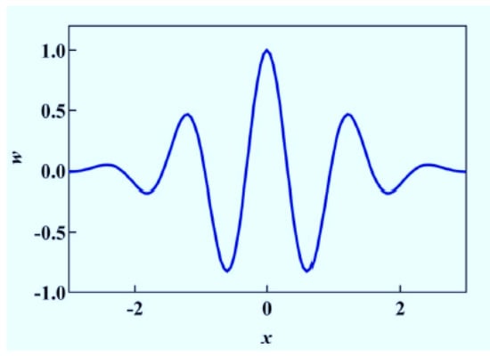 In this regard, the weight of every vector in this work was computed by employing wavelet function (WF) []. Generally speaking, the wavelet is utilized as a useful tool to model seismic signals through compounding translations as well as dilations for oscillatory function (e.g., mother wavelet) over a finite period. This function is utilized to ensure efficient fluctuations throughout the optimization operation. The mother wavelet employed in this work is depicted in Figure 5, and is defined by the following equation: