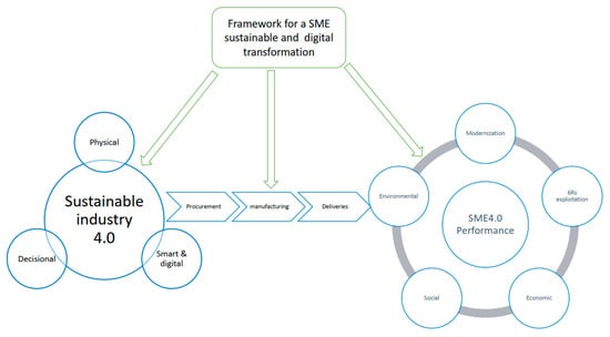 Despite the benefits of Industry 4.0 concept implementation in companies, SMEs are not willing to transform their production system through this investment in new technologies. Examples of the brakes on digitalization include the cost of new technologies, the lack of information on their advantages, the fear of operators to lose their job and the lack of knowledge on new technologies. Indeed, social, societal and environmental aspects have to be taken into account in the SME performance improvement. Hence, the use of digital transformation concepts requires the integration of the previous aspects in terms of sustainability as the main dimension to exploit for SMEs.