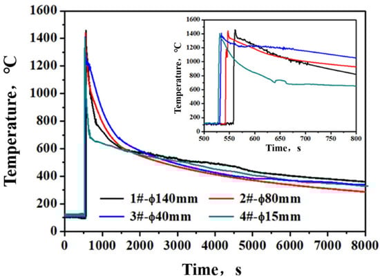Cooling curves of the ingot with different diameters during pouring.