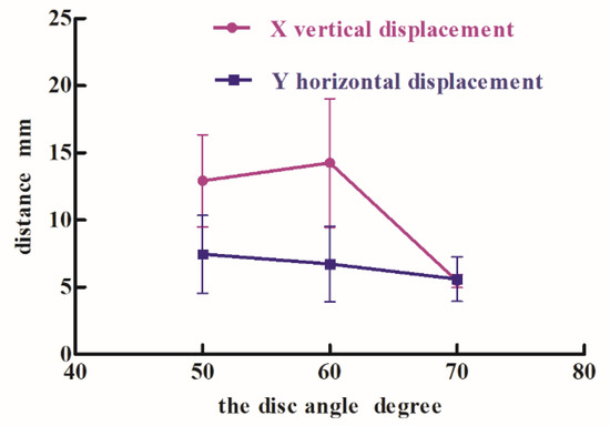 - With increasing forward velocity, the vertical displacement of seeds after soil covering increased, while the horizontal displacement decreased. The changes in the open angle of the soil covering discs had a significant effect on seed displacement. With increasing open angles of soil covering discs, the vertical and horizontal displacements of seeds decreased.