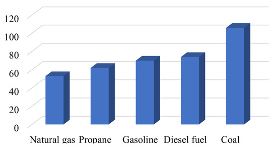 General relationship of produced by common combustion fuels. (Original figure using U.S. Energy Information Administration data.)