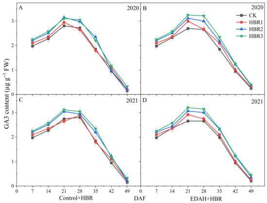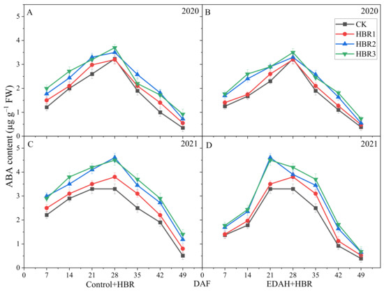 - Yang, J.; Zhang, J.; Wang, Z.; Zhu, Q.; Wang, W. Hormonal Changes in the Grains of Rice Subjected to Water Stress during Grain Filling. Plant Physiol. 2001, 127, 315–323. [Google Scholar] [CrossRef] [PubMed] [Green Version]