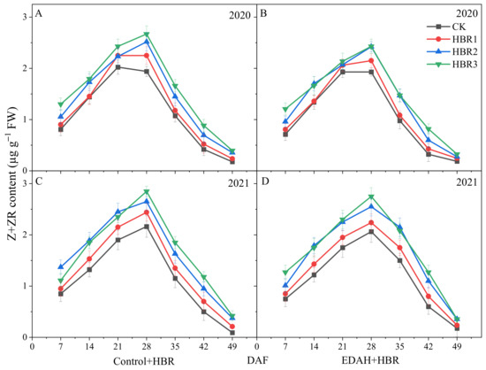 Chicago/Turabian StyleHussain, Mujahid, Zhao Wang, You Mo, Guanmin Huang, Rehana Kaousar, and Weiming Tan. 2022. "Influence of Exogenous 28-Homobrassinolide Optimized Dosage and EDAH Application on Hormone Status, Grain Filling, and Maize Production" Processes 10, no. 6: 1118. https://doi.org/10.3390/pr10061118