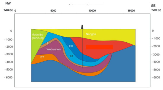 - Dachsteinkalk (DK): 3.091–4.011 m, thickness: 920 m