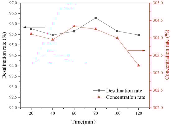 Effect of time on the desalination and concentration rates.