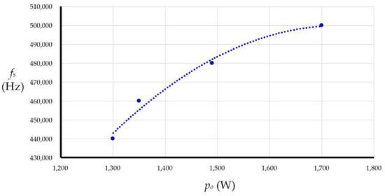 Figure 15 shows the relationship between the heating power and the operating frequency of the proposed induction heating system. The corresponding formula is obtained by using Microsoft Excel’s curve fitting function, as expressed in Formula (25). Through Formula (25), the best operating frequency can be obtained in time.