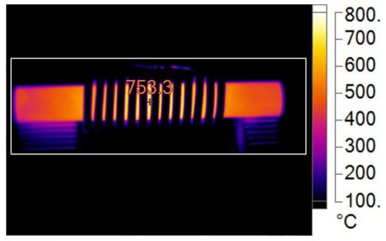 Figure 23 shows that the proposed induction heating system heats the workpiece (a 2 cm diameter and 15 cm long cylindrical low-carbon iron) to 753.3 °C, measured by the infrared thermal imager.
