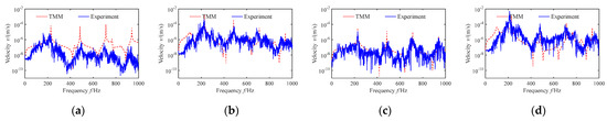 Table 9, Table 10, Table 11 and Table 12 provide the comparison results of the pipe vibration response harmonic frequencies in various cases. The numerical predictions display a satisfied consistence with experimental observations, and the maximum deviation is 3.90%, which may be comprehensively caused by errors in theoretical modeling and numerical solution from analytical approximations, pipe manufacturing errors and mounting deviations, random noises in test data, etc.