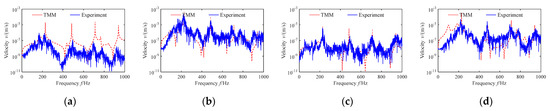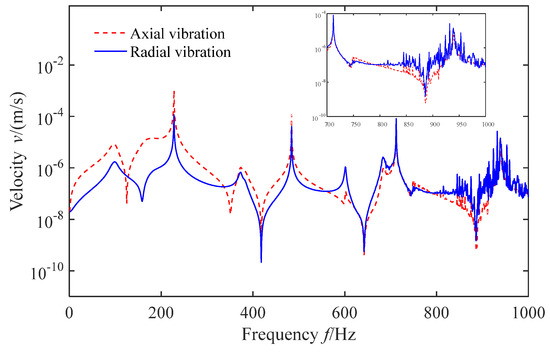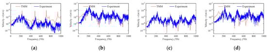 Moreover, the maximum harmonic response amplitude is the first-order harmonic frequency, and the pipe vibration velocity amplitude in the wide frequency domain shows a decreasing trend with the increasing harmonic order, indicating that the energy of the pipe vibration is mainly concentrated in the first few resonant frequencies. Therefore, increasing the pipe system’s fundamental frequencies is significant at the initial design phase and can help avoid low-order vibration frequencies in the pipe and prevent resonances.