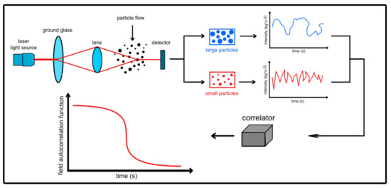 Diffusing wave spectroscopy (DWS) is a multiple light scattering technique based on an approximation of scattered light to a diffusion equation. A laser beam is scattered from a ground glass lens and collected by a second lens before illuminating the turbid sample. The raw data are then fitted to an autocorrelation function using a correlator (Figure 7).