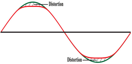 In VFD, the V/f ratio is maintained as constant to maintain the air-gap flux; thus, it is also called the V/f drive. The preliminary unit of a V/f drive produces oscillations in the AC line when the rectifier charges a capacitor unit in the DC bus. Current is consumed from the AC line just when the AC-DC converted voltage surpasses the level of voltage to which the capacitor is charged. Extreme harmonic distortion has many unfavorable impacts. Voltage distortion formed by VFD results in “flat-topping” of power system voltage waveforms, as shown in Figure 2, which in sequence causes the sensitive electronic components to malfunction [3].