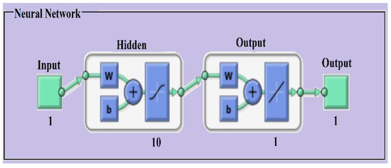 Many researchers analyzed innovative controllers, such as fuzzy logic controller (FLC), artificial neural network (ANN), sliding mode control and the gravitational search algorithm (GSA), tuned PI [17,18] for voltage regulation in order to improve performance, as the traditional PI controller fails under parametric variation situations. Among the many soft computing methods, ANN is proposed in this analysis due to its faster system response, decent performance with trained data, near resemblance to test data and system adaptability. ANN is designed with a bunch of neurons that have the ability of learning and adopting results in fast convergence and good dynamic response [19]. Hence, in this article, ANN is proposed with a hybrid power filter for voltage regulation using the modified p-q theory, to achieve maximum harmonic mitigation.